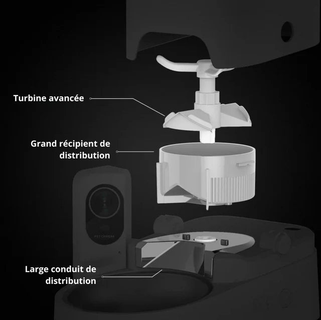 Le distributeur de croquettes dipose d'une technologie anti-blocage. Si une croquette est bloquée, l'APP vous alertera.