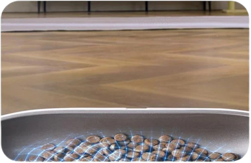 La caméra détecte automatiquement la nourriture restante dans le bol alimentaire afin d'éviter l'empilement des aliments.