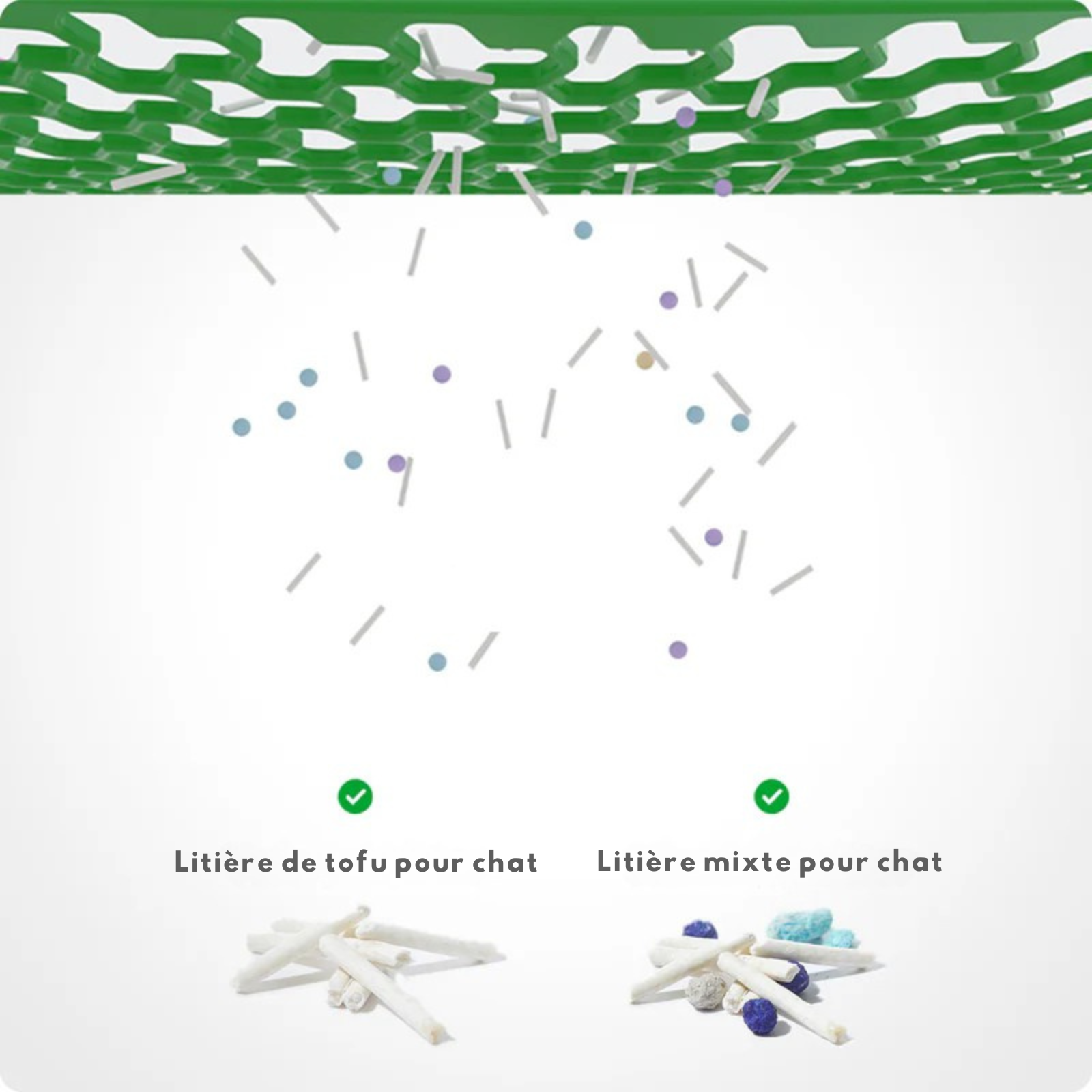 Compatible avec les grosses particules de litière pour chat